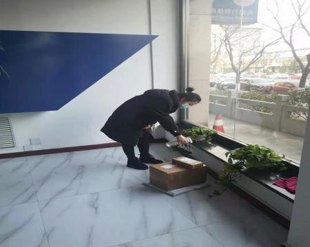 有序的排隊測量體溫、登記 | ![]() 快遞放置區(qū)、對快遞進(jìn)行消毒 | ![]() 發(fā)放防疫物資、做好防控保障 |