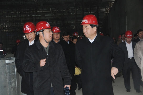 許立全書(shū)記首先在會(huì)展中心西廣場(chǎng)施工現(xiàn)場(chǎng)駐足,查看了工程形象進(jìn)度和廣場(chǎng)施工情況。隨后他從展覽區(qū)東側(cè)安全通道登上16米高二層展覽大廳施工現(xiàn)場(chǎng)查看了工程施工情況。期間,徐鵬強(qiáng)董事長(zhǎng)向許立全書(shū)記匯報(bào)了工程建設(shè)的有關(guān)情況,許立全書(shū)記對(duì)集團(tuán)公司高效的施工組織,優(yōu)質(zhì)的工程質(zhì)量監(jiān)管表示了充分的肯定。