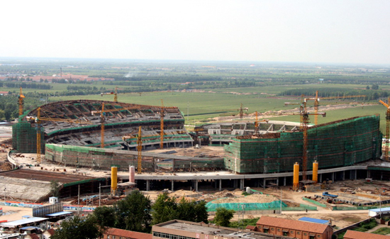 濰坊昌大建設(shè)集團(tuán)承建的濰坊體育場主體工程封頂