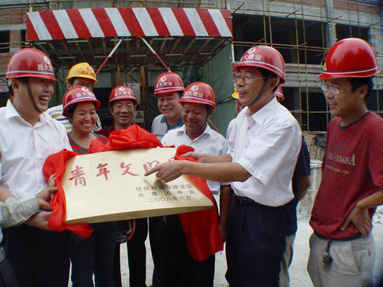 9月19日上午10時(shí)30分,為全國青年文明號(hào)——徐順福項(xiàng)目部舉行的揭牌儀式,在集團(tuán)公司總部辦公樓前舉行。 揭牌儀式由市建設(shè)局副局長葛繼卿主持,山東省建設(shè)廳機(jī)關(guān)黨委常務(wù)副書記張普林,副書記金純龍,團(tuán)委書記辛平,科長李學(xué)雷;共青團(tuán)濰坊市委副書記李強(qiáng);濰坊市建設(shè)局黨委副書記高峰;集團(tuán)公司總經(jīng)理、黨委副書記朱九洲,黨委副書記丁守起,監(jiān)事會(huì)主席、紀(jì)委書記滕忠斌等出席了揭牌儀式。 在今天的揭牌儀式上,由辛平宣讀住宅和城鄉(xiāng)建設(shè)部、共青團(tuán)中央的命名決定,全國青年文明號(hào)——徐順福項(xiàng)目部負(fù)責(zé)人徐順福做表態(tài)發(fā)言,高峰和張普林分別代表市建設(shè)局和省建設(shè)廳做了重要講話。 集團(tuán)公司總部人員,部分基層單位、子公司的代表,各基層單位團(tuán)組織代表,市建設(shè)局系統(tǒng)各單位團(tuán)組織負(fù)責(zé)人共200余人參加揭牌儀式。 濰坊電視臺(tái)、濰坊日報(bào)社、濰坊人民廣播電臺(tái)、山東商報(bào)等多家媒體記者現(xiàn)場采集新聞。 榮獲全國青年文明號(hào)這一榮譽(yù),這在集團(tuán)公司的歷史上還是第一次。
