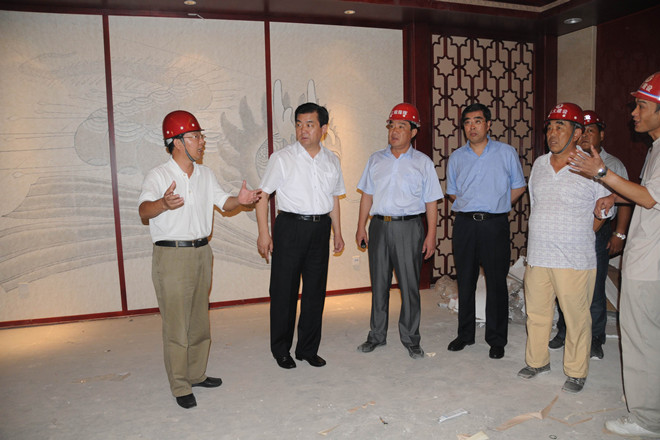 7月16日上午,市委書(shū)記許立全在市委副書(shū)記王獻(xiàn)玲、副市長(zhǎng)夏芳晨、王樹(shù)華及市直有關(guān)部門(mén)負(fù)責(zé)同志陪同下到會(huì)展中心視察。集團(tuán)公司董事長(zhǎng)徐鵬強(qiáng)全程陪同許立全視察。 許立全在會(huì)議中心西側(cè)下車(chē),查看了展覽中心和會(huì)議中心外裝情況、廣場(chǎng)和園林綠化情況,隨后登上會(huì)議中心二層察看了內(nèi)裝并重點(diǎn)察看了千人宴會(huì)廳的內(nèi)裝情況,對(duì)會(huì)展中心的接待能力進(jìn)行了了解。許立全聽(tīng)取了市建設(shè)局副局長(zhǎng)張文在現(xiàn)場(chǎng)關(guān)于工程建設(shè)基本情況的匯報(bào),對(duì)工程建設(shè)情況表示了滿(mǎn)意。