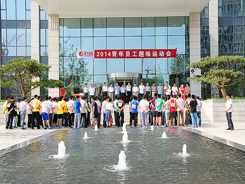 2014年5月29日下午,由集團公司團委倡導(dǎo)主辦、第八分公司承辦的“2014青年員工趣味運動會”在集團辦公大樓廣場舉行。第1-8土建分公司、安裝分公司、機施分公司、裝飾分公司、裝飾窗業(yè)分公司、公管公司、園林公司、鳶港公司以及集團總部共16支代表隊參加了此次趣味運動會。集團高管領(lǐng)導(dǎo)滕忠斌、李坤明出席活動。
