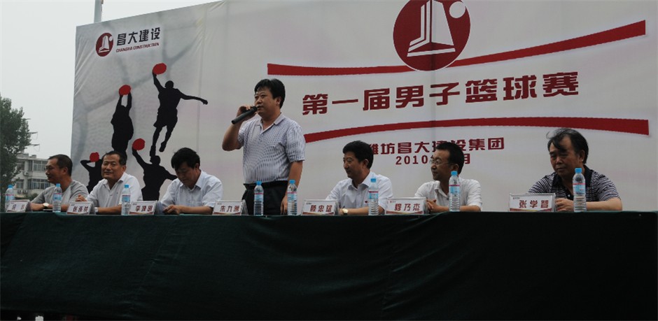 2010年8月10日至24日在濰坊中學(xué)籃球場和籃球館舉行。集團(tuán)公司高管層領(lǐng)導(dǎo)朱九洲、滕忠斌、李坤明、穆乃杰、張連悅、張學(xué)智、閆鵬等出席8月10日開幕式并在主席臺就坐,來自集團(tuán)公司各基層單位、子公司和總部的十四支代表隊、各單位啦啦隊及大賽組委會全體人員近500人參加了開幕式。8月10日下午4時,開幕式正式開始,各參賽隊運動員和執(zhí)法裁判在引導(dǎo)禮儀的引領(lǐng)下,依次經(jīng)過主席臺接受集團(tuán)公司高管層領(lǐng)導(dǎo)的檢閱。開幕式由集團(tuán)公司工會主席兼本次大賽組委會主任李坤明主持,黨委副書記、監(jiān)事會主席、紀(jì)委書記滕忠斌代表集團(tuán)公司致辭,4時15分,集團(tuán)公司總經(jīng)理朱九洲宣布“濰坊昌大建設(shè)集團(tuán)第一屆男子籃球友誼賽開幕”。開幕式后進(jìn)行了六場小組賽。按照日程,將進(jìn)行總共49場比賽,最終決定首屆男子籃球賽的冠、亞、季軍和各隊排名。