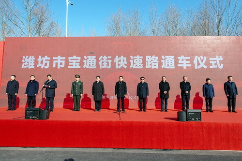 公元2022年1月1日上午,迎著新年第一縷陽光,濰坊這個蘊藏著古老文明而又展現(xiàn)新時代蓬勃氣息的風箏之都開啟了一年全新的征程。和煦的冬日暖陽沐浴著一群群奮斗的人們的笑臉。作為建設者的我們則在這一天又見證了一個光榮時刻的到來,濰坊市委、市政府為濰坊城區(qū)第一條快速路——寶通街高架快速路舉行隆重而簡約的開通慶典。