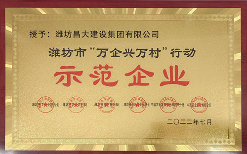 2022年8月10日,濰坊市“萬企興萬村”行動現(xiàn)場推進會議召開,會上通報表彰了125家“萬企興萬村”示范企業(yè)(合作社),集團公司榮獲該項榮譽。
