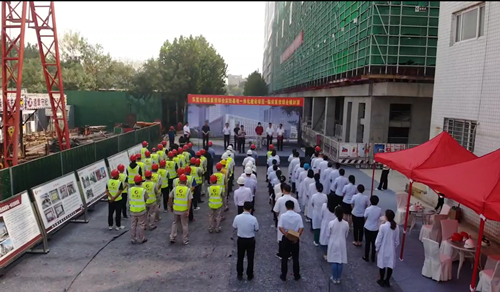 2022年9月28日上午9點(diǎn)58分,由集團(tuán)四建公司總承包施工的東營市臨床醫(yī)技綜合實(shí)踐基地一體化建設(shè)項(xiàng)目——臨床醫(yī)技綜合樓封頂儀式在項(xiàng)目現(xiàn)場隆重舉行。 東營市人民醫(yī)院黨委書記徐新生、院長張振海、副院長岳長春,集團(tuán)公司董事長徐鵬強(qiáng)、副總裁王建波,山東新開元建設(shè)項(xiàng)目管理有限公司董事長宗輝出席封頂儀式。東營市人民醫(yī)院黨委書記徐新生宣布“封頂”。 參加封頂儀式的還有:集團(tuán)安裝公司總經(jīng)理劉志偉、裝飾幕墻公司總經(jīng)理付光文,四建公司副總經(jīng)理叢興杰、總經(jīng)理助理馬康文,建設(shè)、監(jiān)理、集團(tuán)四建公司等相關(guān)單位員工代表100余人。