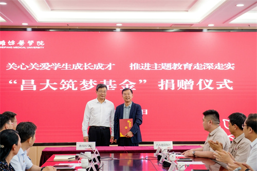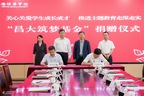 2023年5月18日下午,濰坊昌大建設(shè)集團(tuán)捐贈(zèng)濰坊醫(yī)學(xué)院“昌大筑夢基金”捐贈(zèng)儀式在濰坊醫(yī)學(xué)院行政樓隆重舉行。