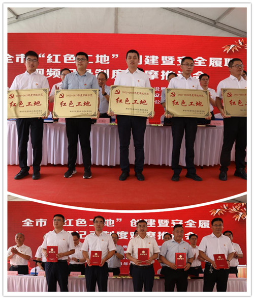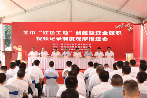 2023年6月28日上午,全市“紅色工地”創(chuàng)建暨安全履職視頻記錄制度觀摩會在集團四建公司總承包施工的濰坊市人民醫(yī)院內(nèi)科院區(qū)項目現(xiàn)場舉辦。山東省建設工程質量安全中心主任王華杰,濰坊市住建局黨組書記、局長馬冰,濰坊市委組織部組織二科科長李連偉,濰坊市直機關工委組織部四級調研員李桂波,濰坊市住建局黨組成員、建筑業(yè)發(fā)展服務中心黨委書記、主任許增賢,濰坊市奎文區(qū)委常委、組織部長田學剛,濰坊市建筑業(yè)發(fā)展服務中心專職副書記、紀委書記彭玉剛,濰坊市奎文區(qū)住建局黨組書記、局長張文干等在主席臺就座;各縣市區(qū)、市屬有關開發(fā)區(qū)住建局代表、“紅色工地”創(chuàng)建工作先進單位、優(yōu)秀班組、先進個人及優(yōu)秀示范項目代表共100余人參加會議。集團公司紀委書記穆乃杰受黨委書記、董事長徐鵬強委托出席會議致歡迎辭并作了題為《黨建引領方向、紅色鑄就經(jīng)典》的典型交流發(fā)言。