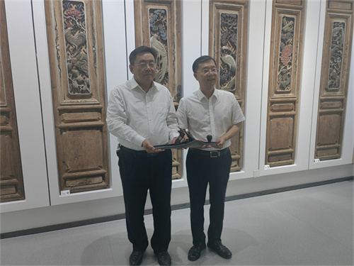 簽約前,與會領導和嘉賓圍繞相關話題進行了交流并實地考察了學院校容校貌,參觀了位于院內的山東古建筑構件博物館,近距離了解中國古建筑技藝及中華優(yōu)秀傳統(tǒng)文化的傳承與創(chuàng)新。