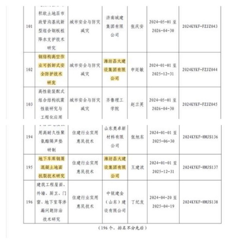 近日,山東省住房和城鄉(xiāng)建設(shè)廳下發(fā)了《關(guān)于公布2024年度山東省住房城鄉(xiāng)建設(shè)科技計劃項目的通知》,集團公司申報的研究課題“鋼結(jié)構(gòu)高空作業(yè)可拆卸式安全防護技術(shù)研發(fā)”和“地下車庫鋼屑混凝土地面抗裂技術(shù)研究”成功入選,這是集團公司首次獲批立項該科技計劃項目。另據(jù)悉,本年度濰坊市僅有4項課題獲評立項,其中集團公司占2項。