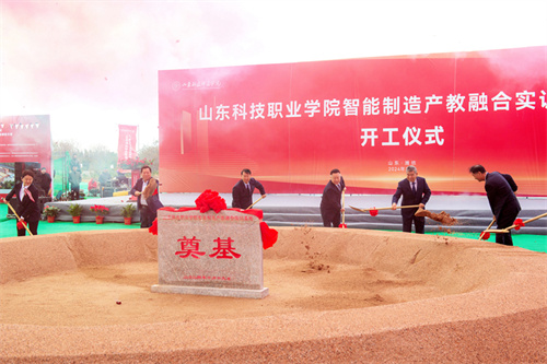 2024年10月19日上午,山東科技職業(yè)學(xué)院隆重舉行智能制造產(chǎn)教融合實訓(xùn)基地項目開工儀式。