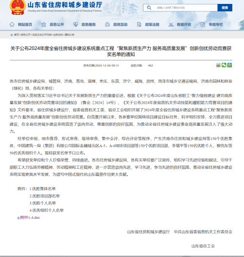 2024年12月6日,2024年度全省住房城鄉(xiāng)建設(shè)系統(tǒng)重點(diǎn)工程“聚焦新質(zhì)生產(chǎn)力服務(wù)高質(zhì)量發(fā)展”創(chuàng)新創(chuàng)優(yōu)勞動競賽獲獎名單公布,集團(tuán)公司榮獲優(yōu)勝集體稱號,四建公司的昌威綜合運(yùn)營中心綜合運(yùn)營樓項(xiàng)目部榮獲優(yōu)勝項(xiàng)目部,高春濤榮獲優(yōu)勝個人。