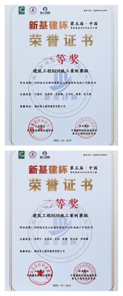 據(jù)悉,本屆大賽采取企業(yè)自愿參賽機(jī)制,經(jīng)過嚴(yán)格的形式審核、在線評審、視頻答辯及結(jié)果公示等環(huán)節(jié),最終確定獲獎成果。其中,由集團(tuán)第二安裝公司申報的《BIM技術(shù)在濰坊市第三人民醫(yī)院機(jī)電施工中的應(yīng)用》和《BIM技術(shù)在山東?;强刂行臋C(jī)電施工中的應(yīng)用》分別榮獲一等獎和二等獎。
